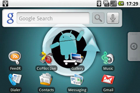 Dupa un bootscreen de Samdroid urmeaza o animatie foarte faina de la Cyanogen.